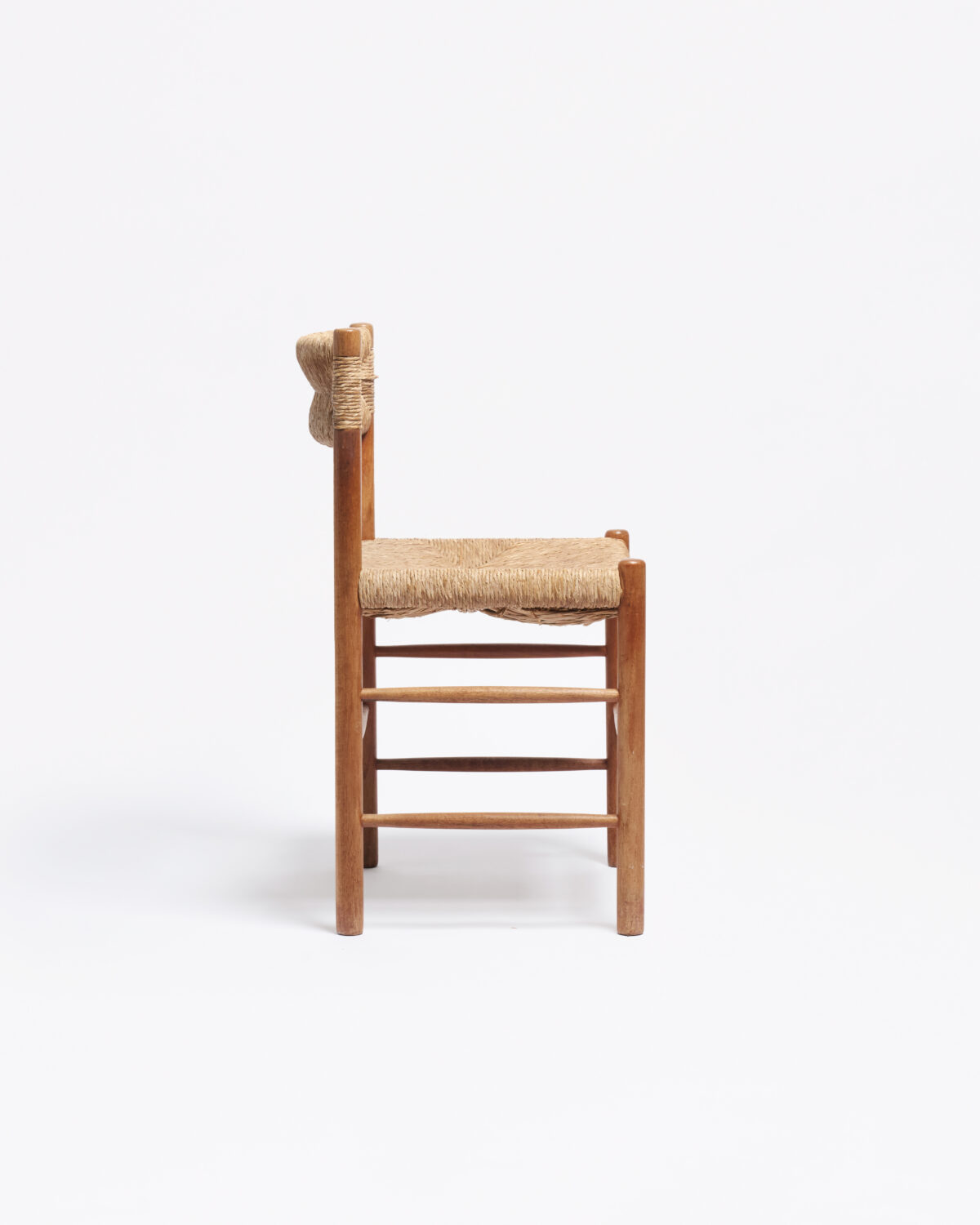 By the 1940s and 50s, her focus had shifted from the machine to the hand. Time in Japan exposed her to joinery, modularity and the discipline of reduction. When she returned to France, those lessons surfaced in her work with regional materials: pine, oak, straw, bamboo. The Dordogne Chair, with its woven seat and solid-wood frame, reconciled craft and modern proportion. It was modernism slowed down to a more human rhythm. (Fondation Louis Vuitton, Charlotte Perriand: Inventing a New World, 2019)